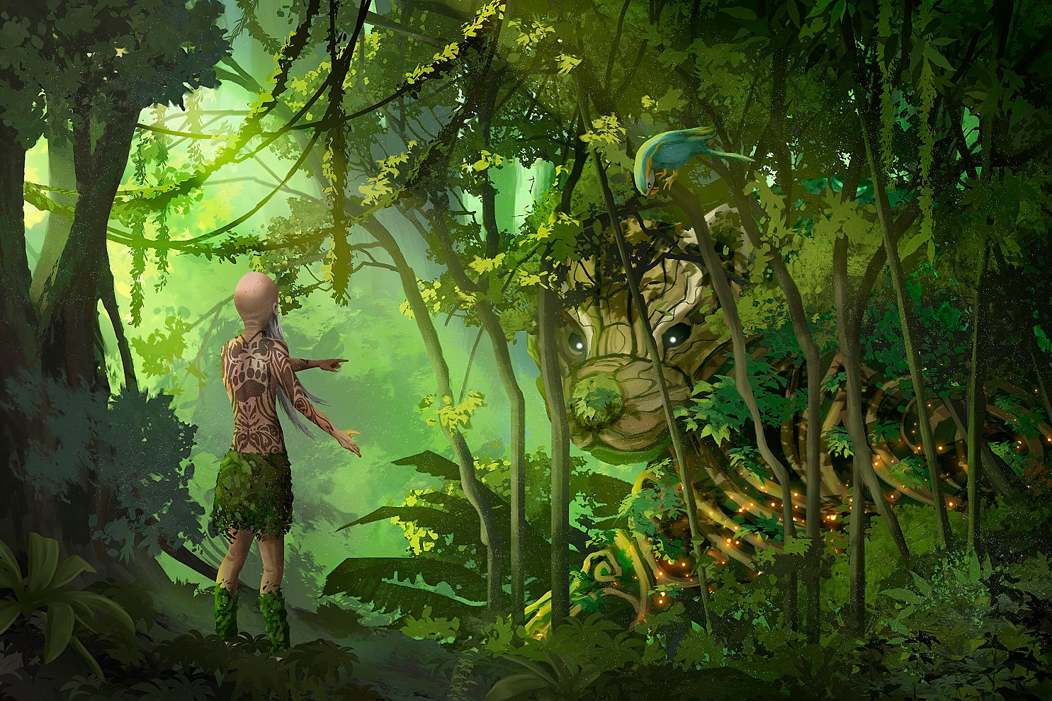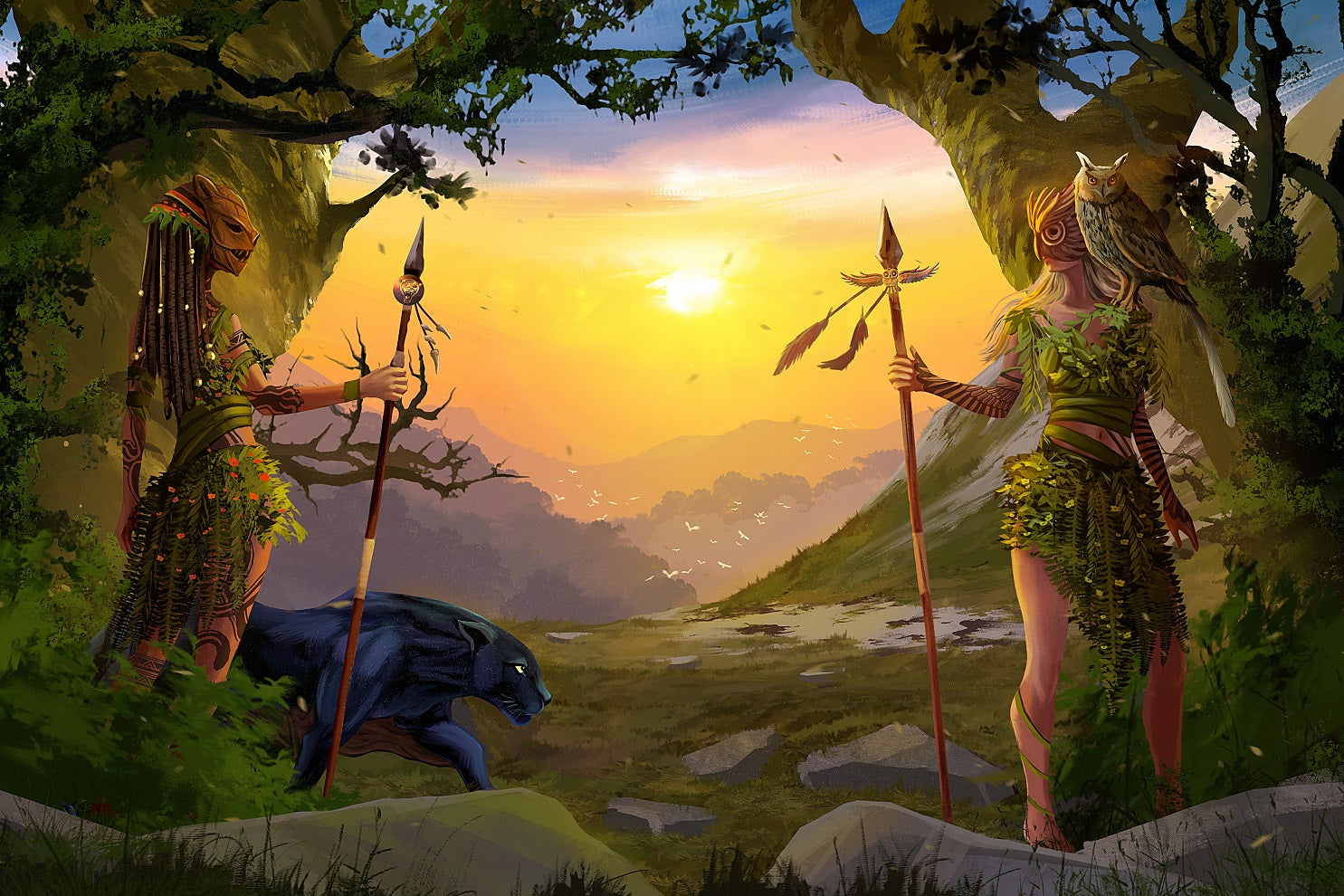 Two sentinel Druids of the Claw sent on a mission to the edge of the jungle to keep an eye on a dangerous outcast. If it were up to Ferr'ha, he'd be dead. Good thing Ktah'la is there to soothe her.