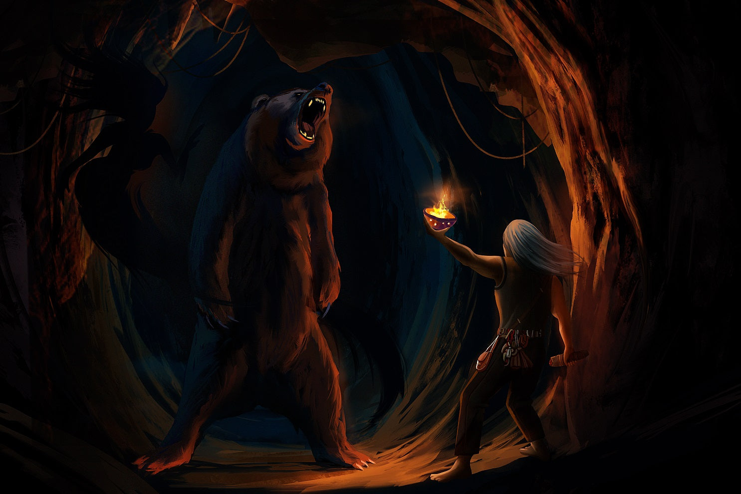 An old Druid of the Claw roaming the jungle with his beloved elemental bear, Barraram.